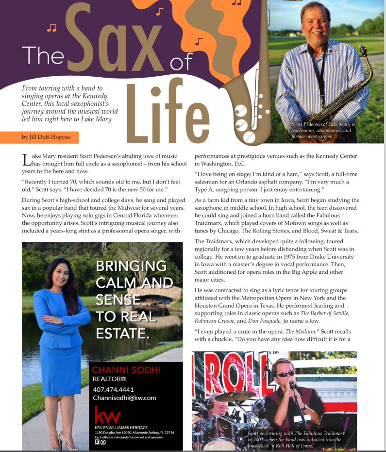 Life's twists and turns led me to explore classical voice training at Drake University and even perform at prestigious venues like the Metropolitan Opera Studio, Texas Opera Theater and the Kennedy Center. But the call of rock 'n’ roll was never far behind. 30 years later I reunited with the band, The Fabulous Traidmarx, when we were inducted into The Iowa Rock ‘n Roll Hall of Fame and rediscovered the joy of making music together. What a kick that was! That was a lot of fun! After losing my singing voice several years ago, the desire for performing and sharing music didn’t go away, so I renewed my love of the saxophone!